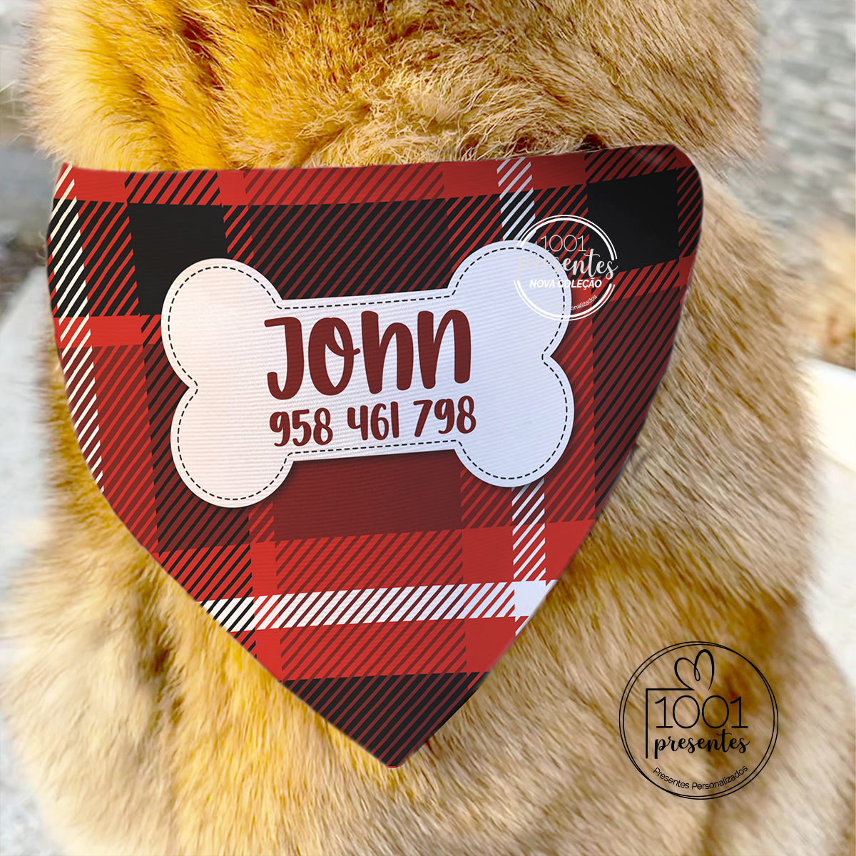 A nossa coleira com lenço ajustável e personalizada, com o nome do teu patudo e opção de chapinha com contacto, é tudo o que precisas para o manter seguro e com estilo.
