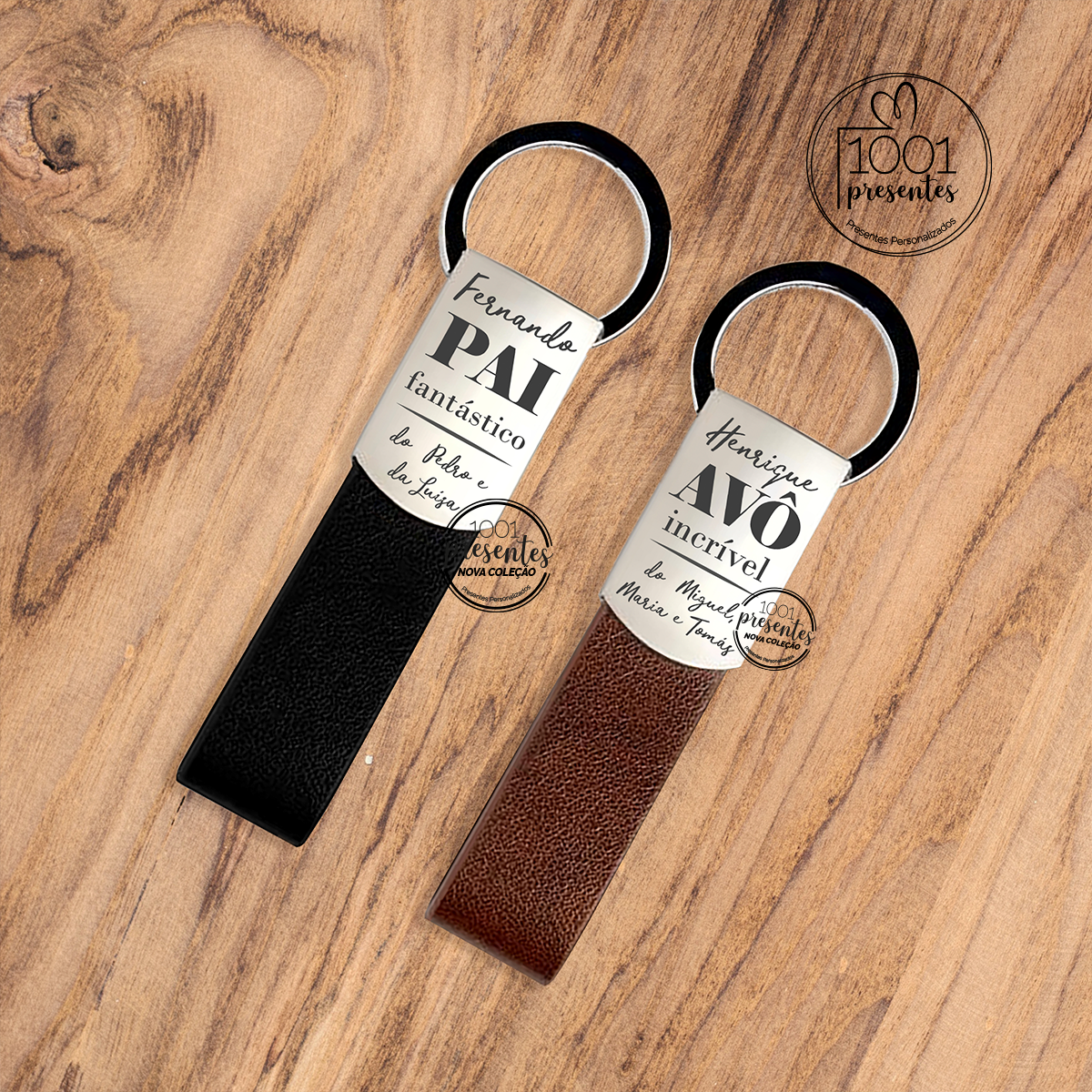 O nosso porta-chaves é o presente que procurava! Porta-chaves em aço inóx personalizado a laser e com fita de cabedal para uma maior durabilidade.
